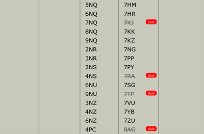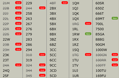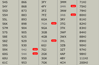 all numbers shown are available