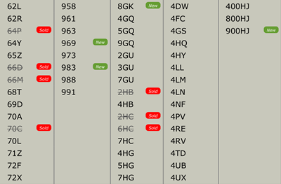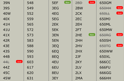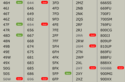 all numbers shown are available